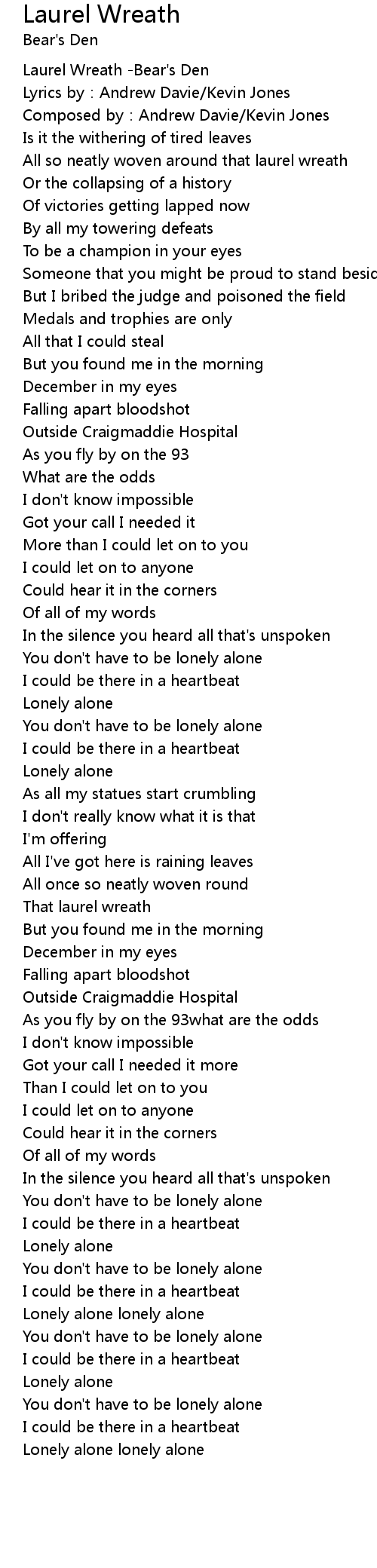 | [00:00.149] | Laurel Wreath -Bear's Den |