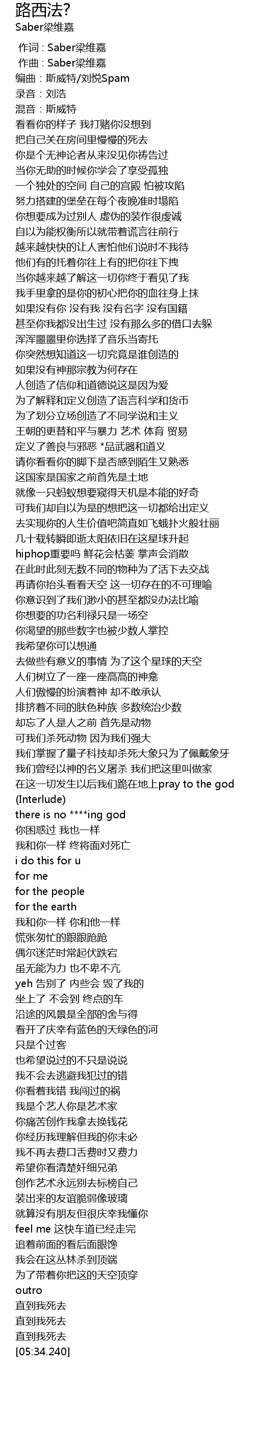 | [00:01.000] | zuò qǔ : Saber liáng wéi jiā |