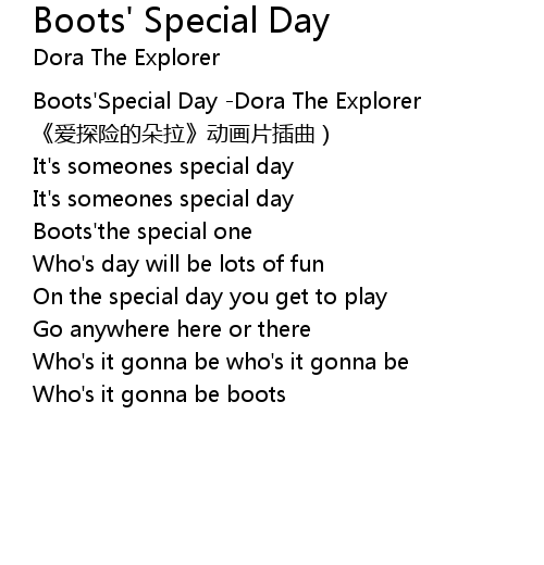 | [00:00.610] | Boots' Special Day Dora The Explorer |