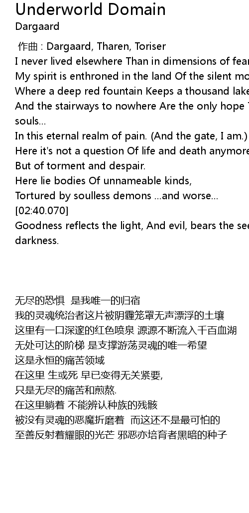 | [01:52.540] | In this eternal realm of pain. (And the gate, I am.) |