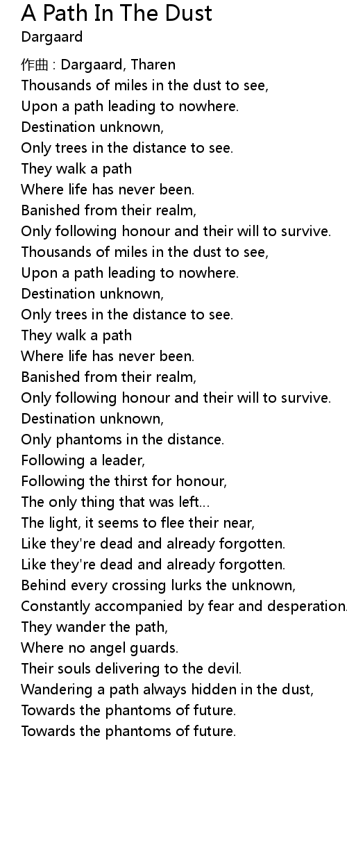 | Song | A Path In The Dust |