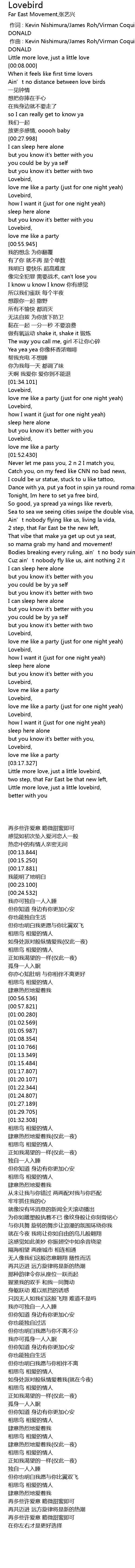 | [00:01.000] | zuo qu : Kevin Nishimura James Roh Virman Coquia JOCELYN ADRIENE DONALD |