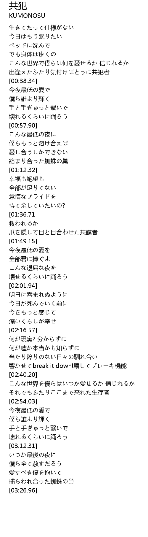 | [01:43.27] | 爪を隠して目と目合わせた共謀者 |