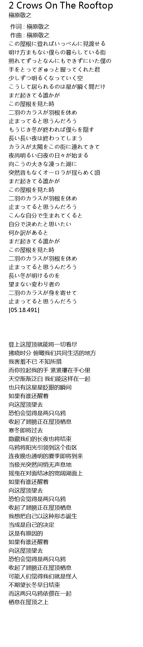 | [05:03.730] | 二羽のカラスが身を寄せて |
