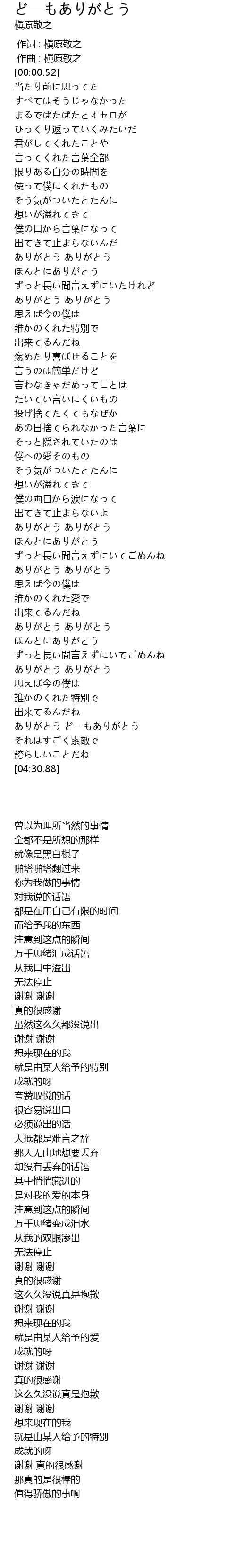 | [03:20.29] | ほんとにありがとう |