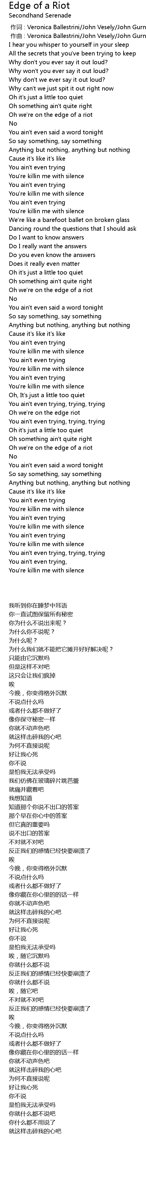 | [00:44.06] | Oh we' re on the edge of a riot |