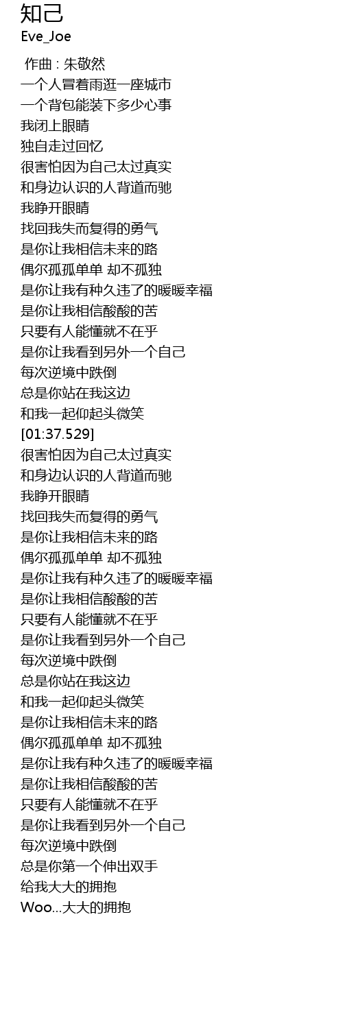 | [01:17.725] | zhǐ yào yǒu rén néng dǒng jiù bù zài hu |