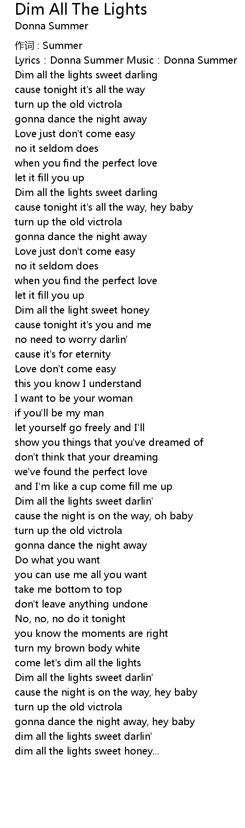 | Dim all the lights sweet darling | |