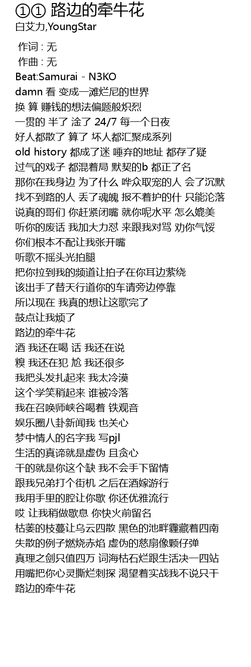 | [02:36.93] | 用嘴把你心灵撕烂刺探 渴望着实战我不说只干 |
