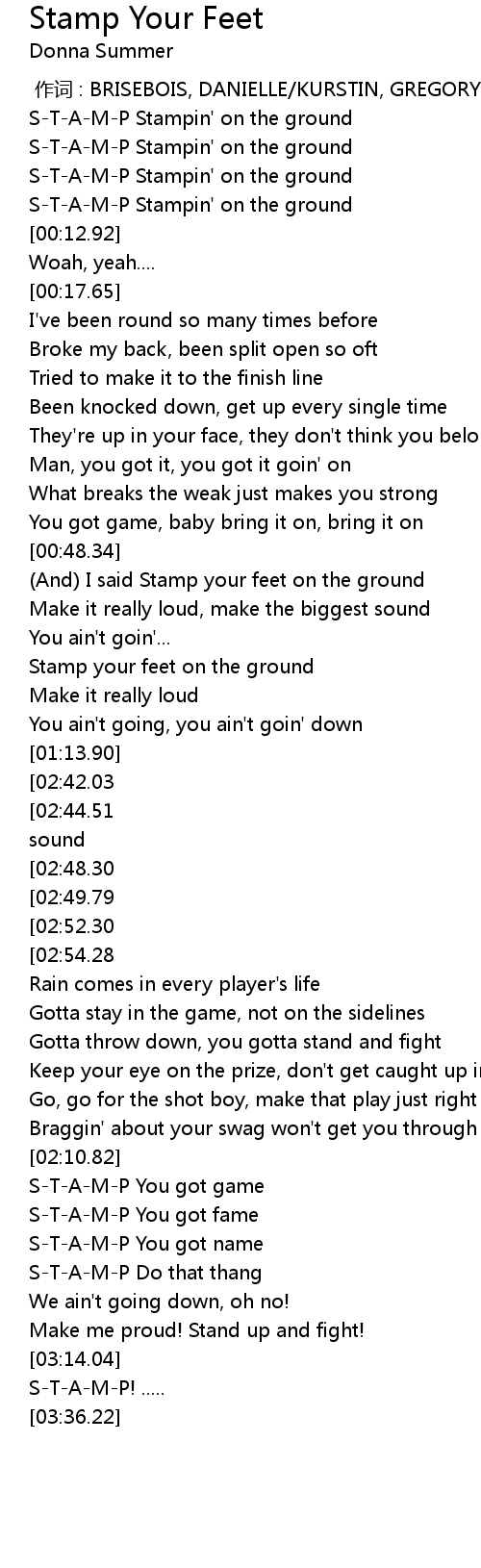 | [00:48.64] | And I said Stamp your feet on the ground |