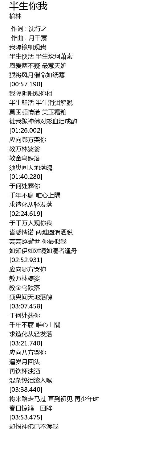 | [00:00.000] | 作词 : 沈行之 |
