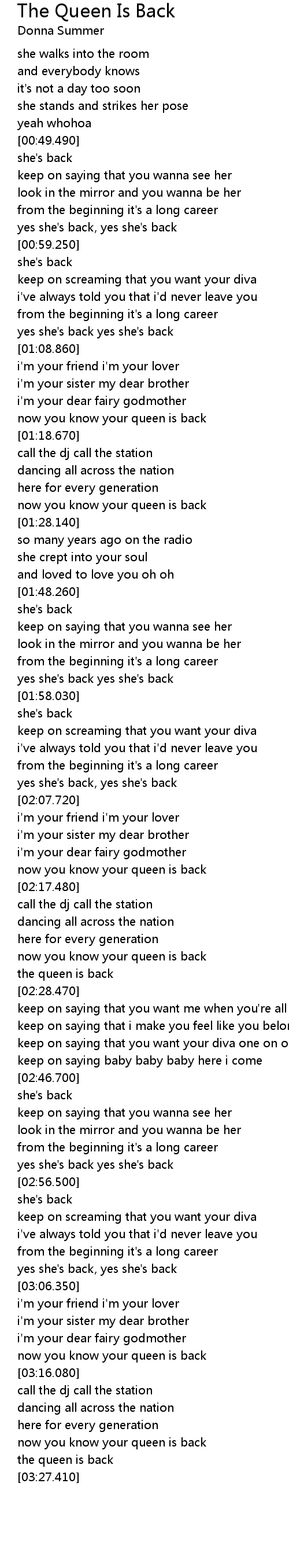 now you know your queen is back |