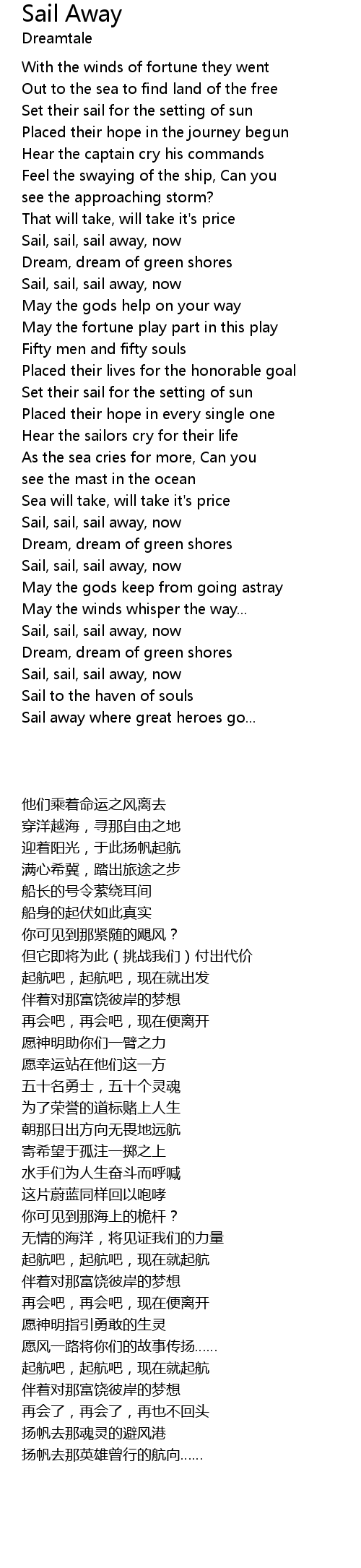 Sail, sail, sail away, now |