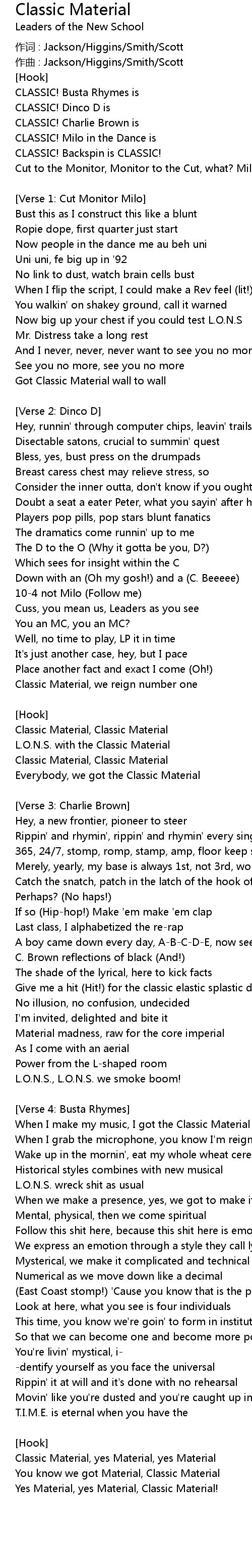 | When I make my music, I got the Classic Material | |