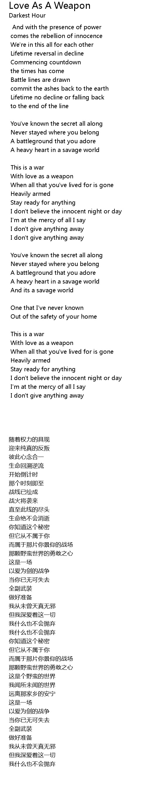 With love as a weapon |