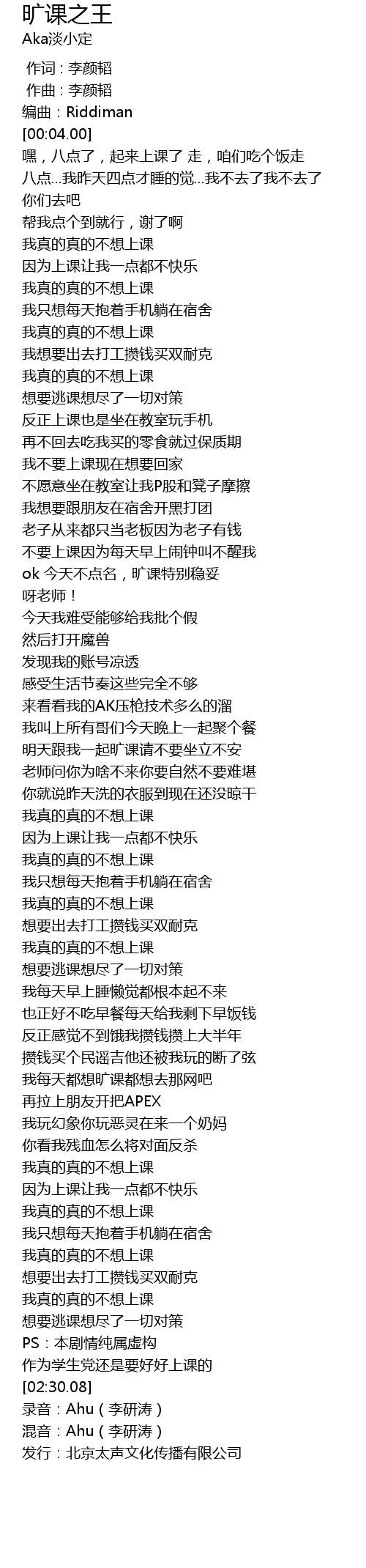 | [00:34.32] | wǒ zhēn dí zhēn de bù xiǎng shàng kè |