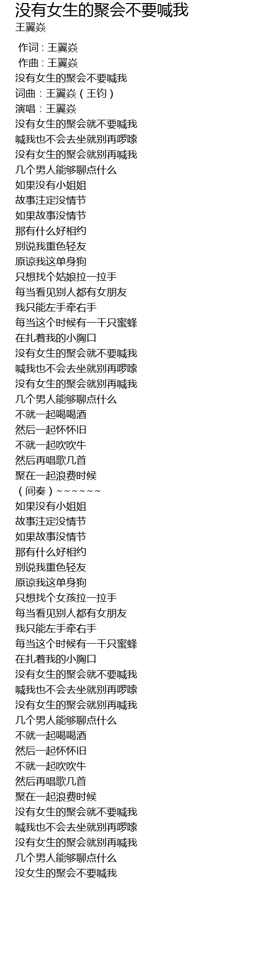 | [02:51.29] | 没女生的聚会不要喊我 |