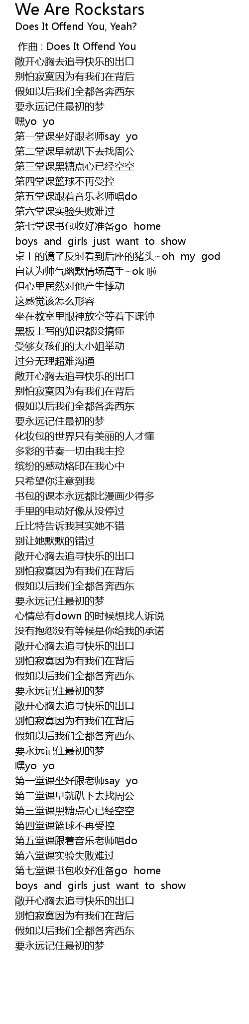 | [00:00.00] | zuò qǔ : Does It Offend You |