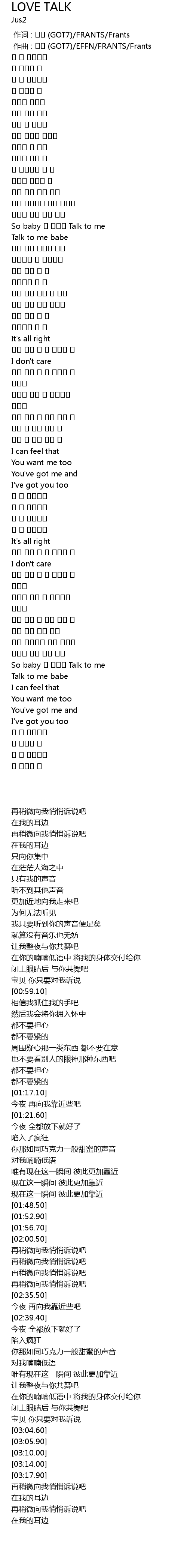 | [00:01.000] | zuò qǔ : GOT7 EFFN FRANTS Frants |