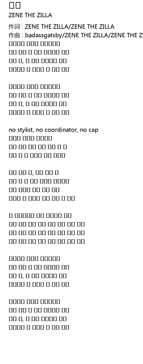 | 作词 : ZENE THE ZILLA/ZENE THE ZILLA | |