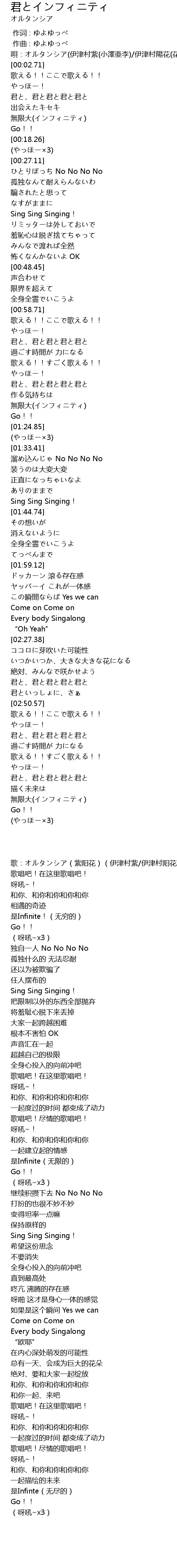 | [03:10.55] | 無限大(インフィニティ) |
