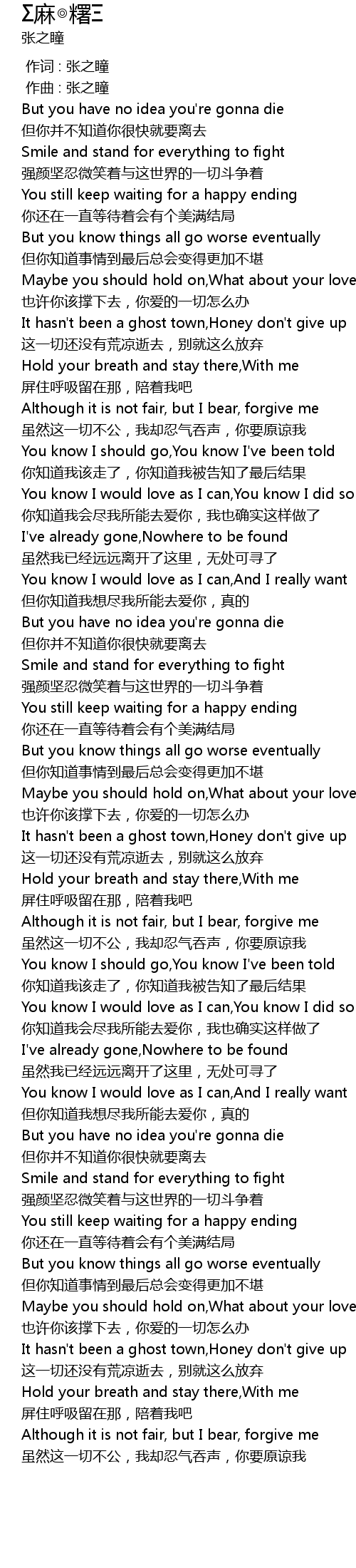 | [03:44.875] | You still keep waiting for a happy ending nǐ hái zài yī zhí děng dài zhe huì yǒu gè měi mǎn jié jú |