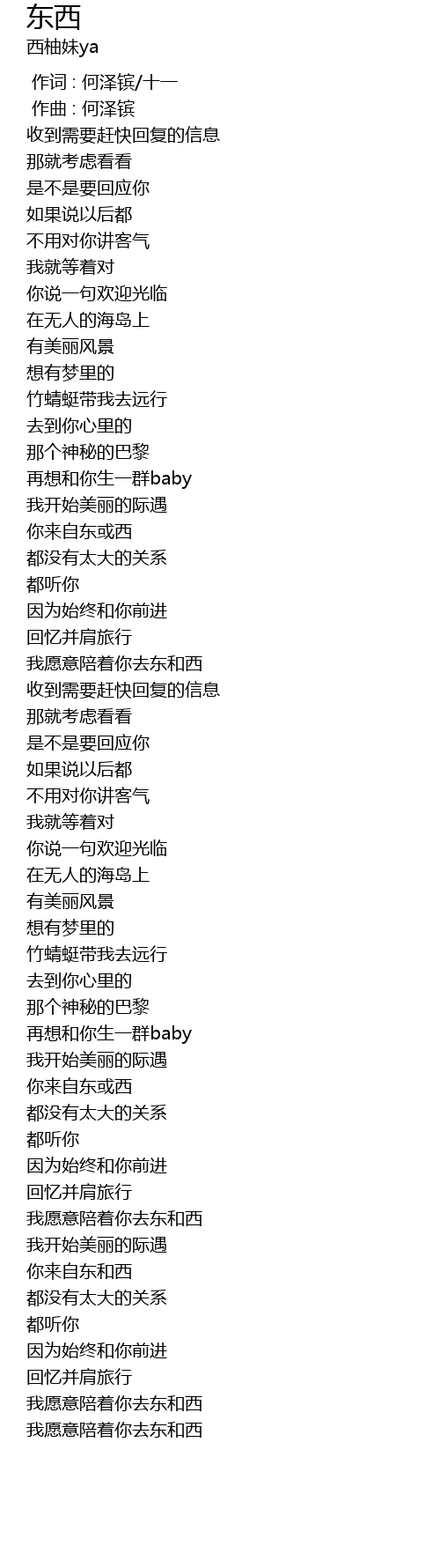 | [00:52.181] | 我愿意陪着你去东和西 |