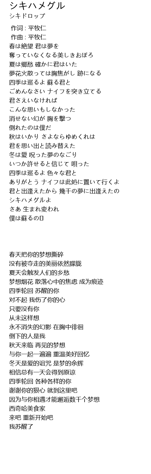 | [00:46.44] | 四季は巡るよ 蘇る君と |