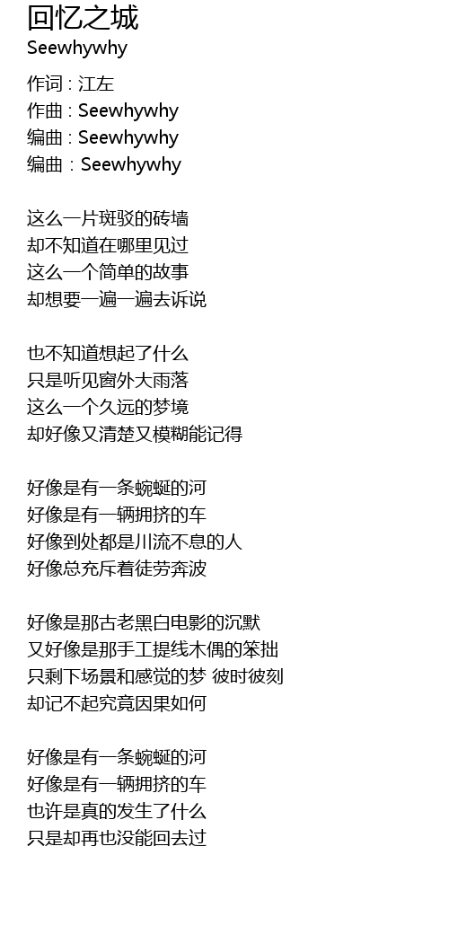 | Song | 回忆之城 |