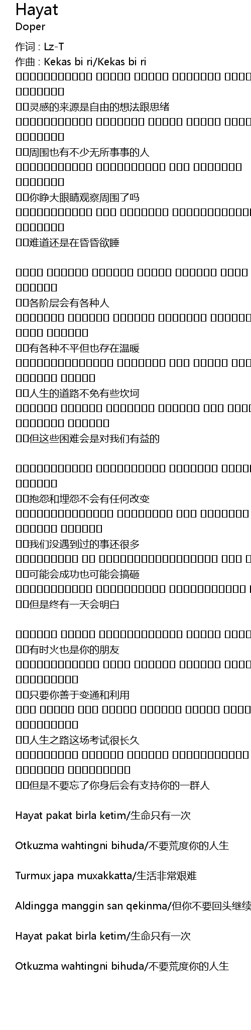 | Hayat pakat birla ketim shēng mìng zhǐ yǒu yī cì | |