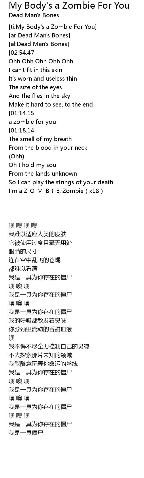 | [03:27.42] | I'm a Z-O-M-B-I-E, Zombie(x18) |
