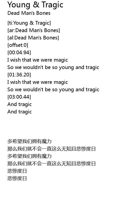 | [01:26.93] | So we wouldn't be so young and tragic |