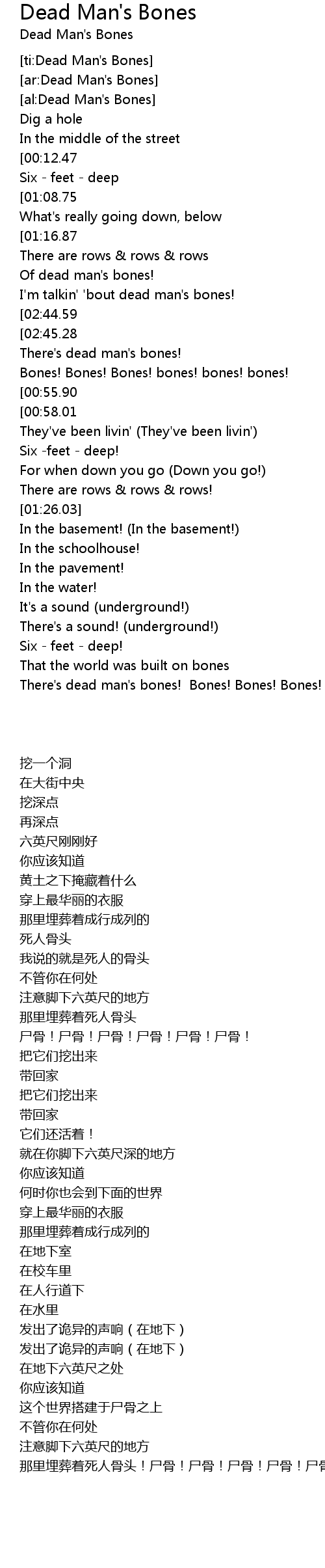 [02:47.46] There's dead man's bones! Bones! Bones! Bones! bones! bones! bones!