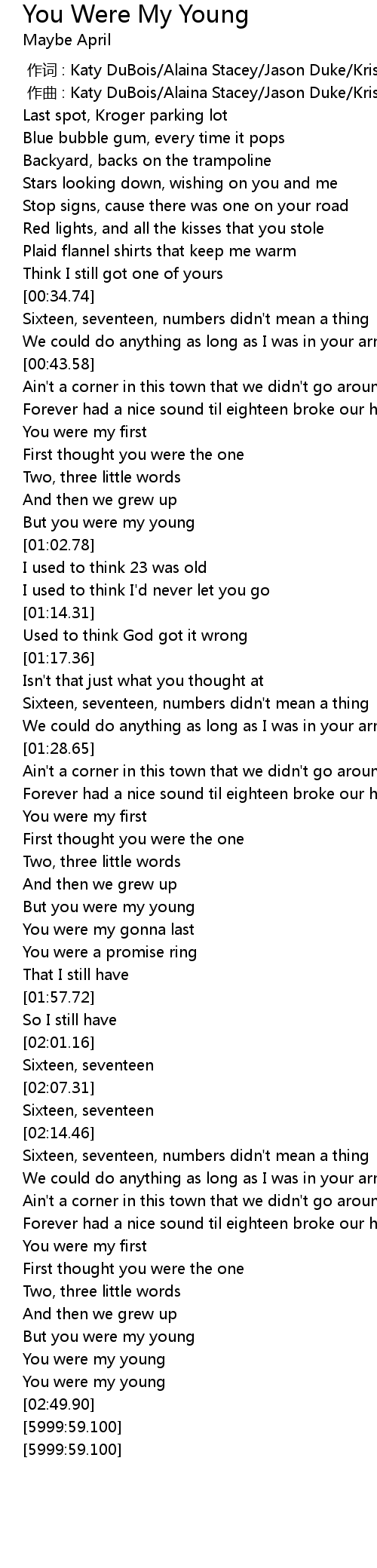 | [02:27.34] | Forever had a nice sound til eighteen broke our hearts |