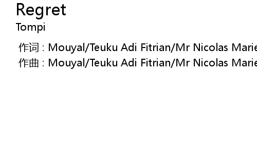 | [00:00.000] | 作词 : Mouyal/Teuku Adi Fitrian/Mr Nicolas Marie Francois Rastoul |