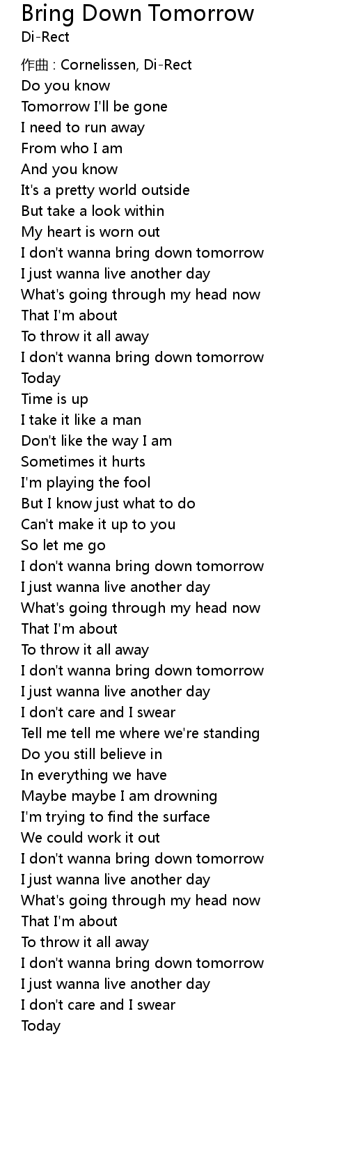 | I don't wanna bring down tomorrow | |