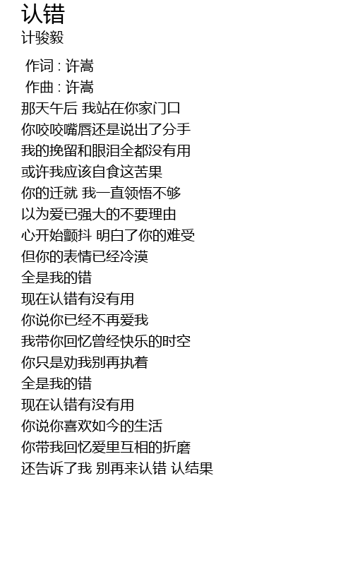 | [01:49.979] | 还告诉了我 别再来认错 认结果 |