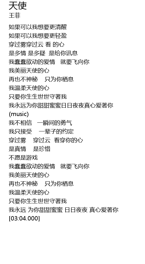 | [02:41.000] | wǒ wēn róu tiān shǐ de xīn |