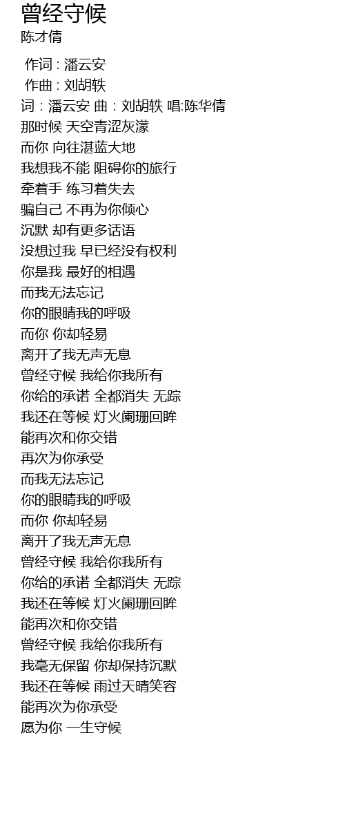 | [03:17.941] | 曾经守候 我给你我所有 |