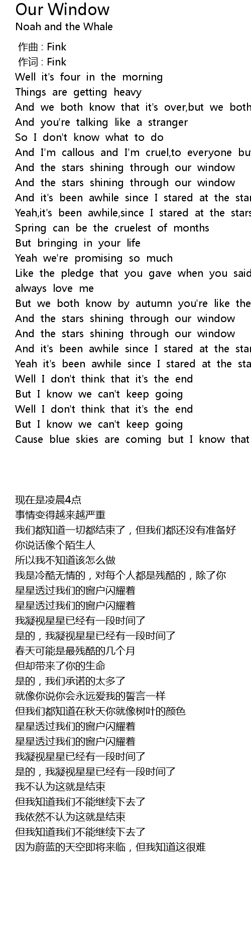 | [03:53.447] | And the stars shining through our window |