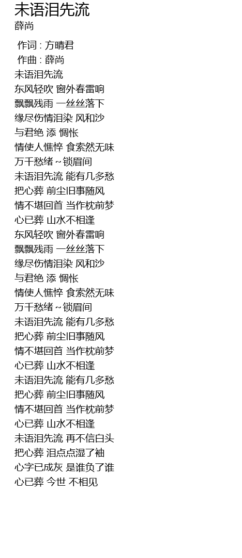 | [04:24.436] | wèi yǔ lèi xiān liú zài bù xìn bái tóu |