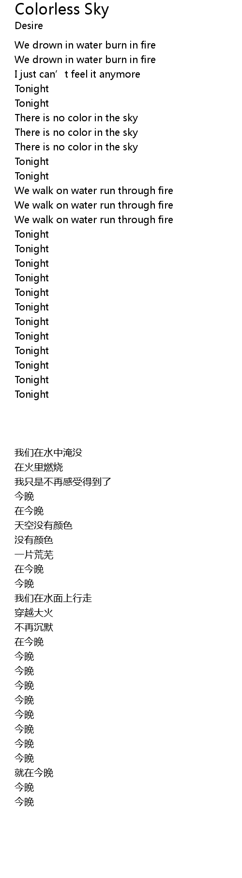 | [01:31.98] | There is no color in the sky |