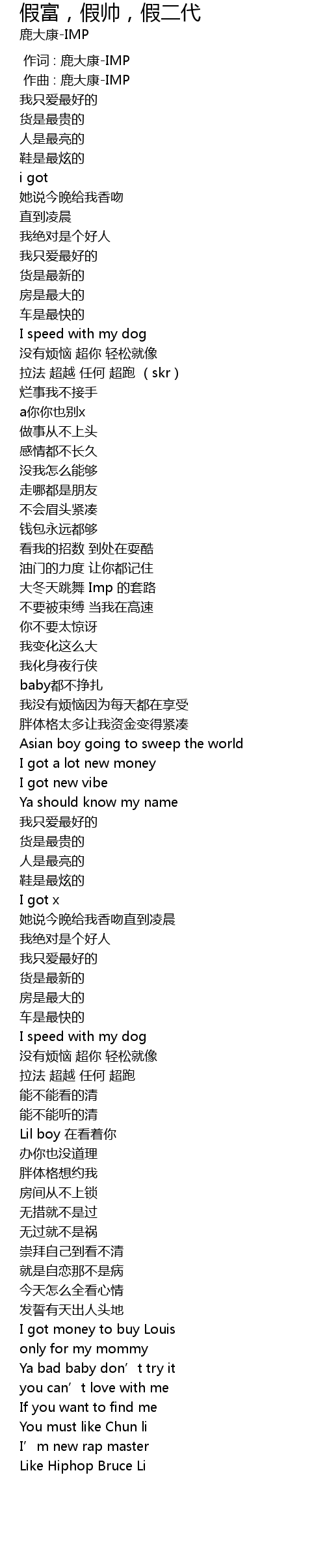 | [00:00.000] | 作词 : 鹿大康-IMP |