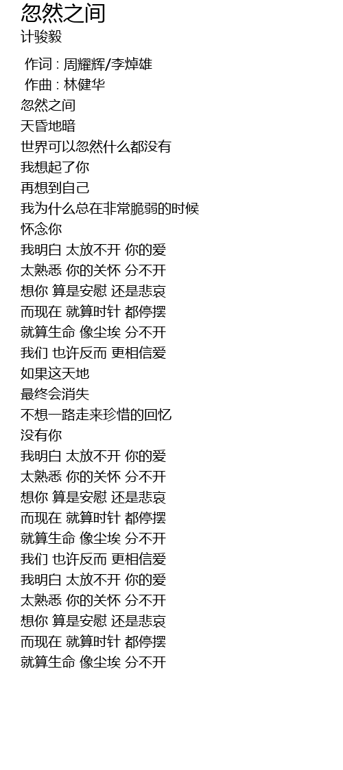 | [00:00.000] | 作词 : 周耀辉/李焯雄 |
