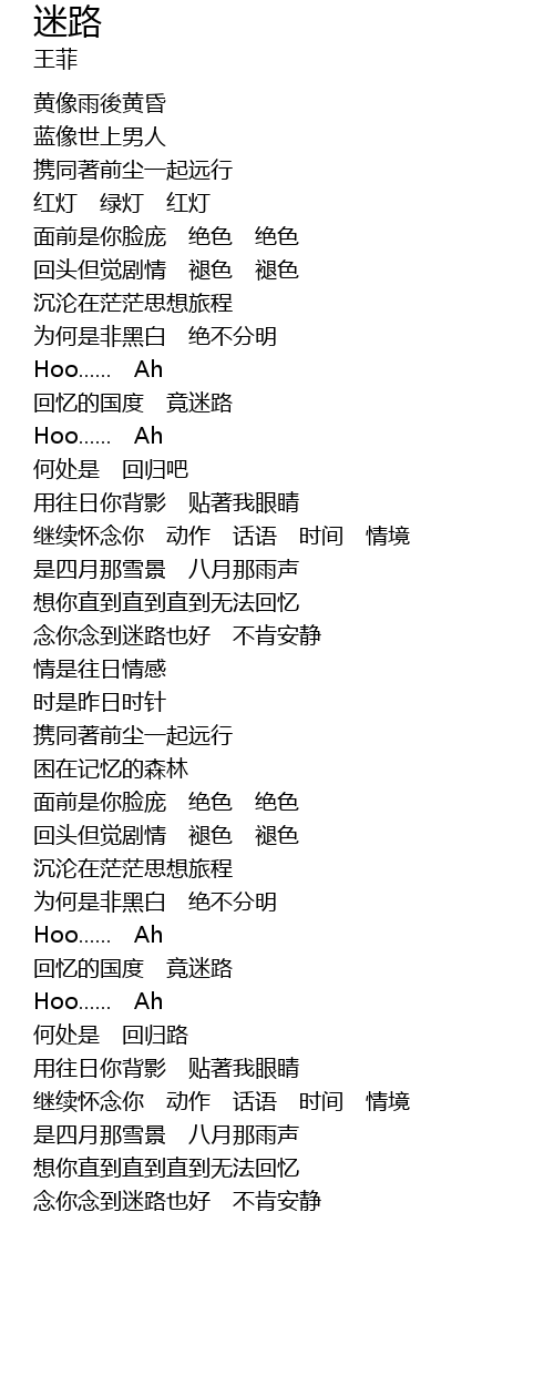 | [01:21.0] | 回忆的国度 竟迷路 |