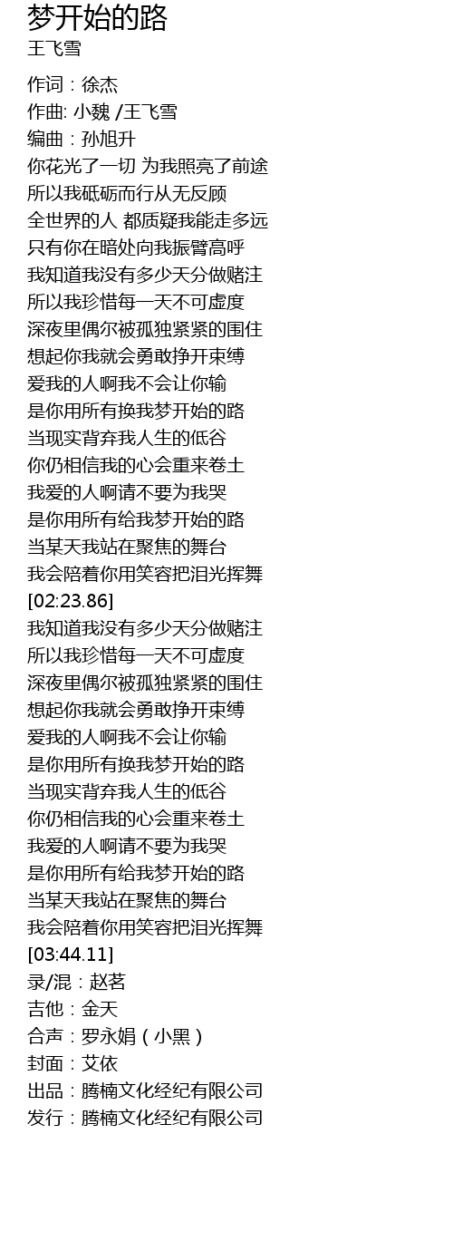 | [03:59.90] | 发行:腾楠文化经纪有限公司 |