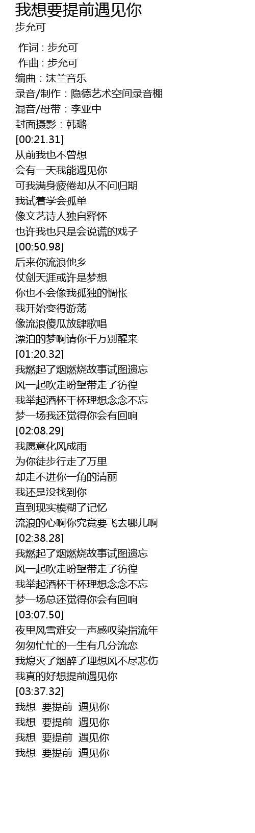 | [03:59.21] | wǒ xiǎng yào tí qián yù jiàn nǐ |