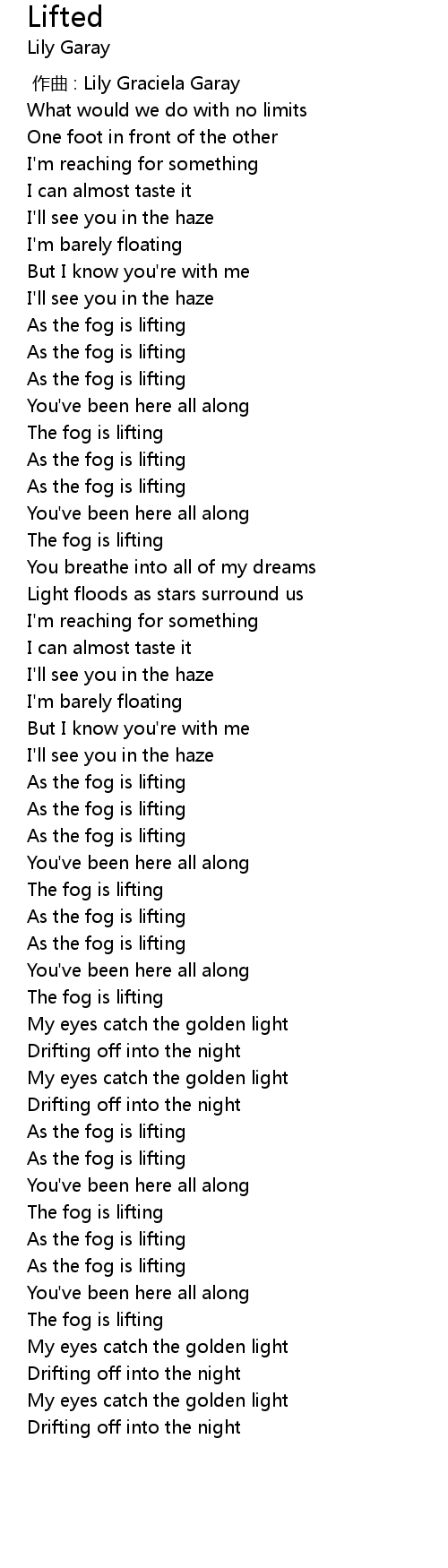 | [02:04.187] | As the fog is lifting |