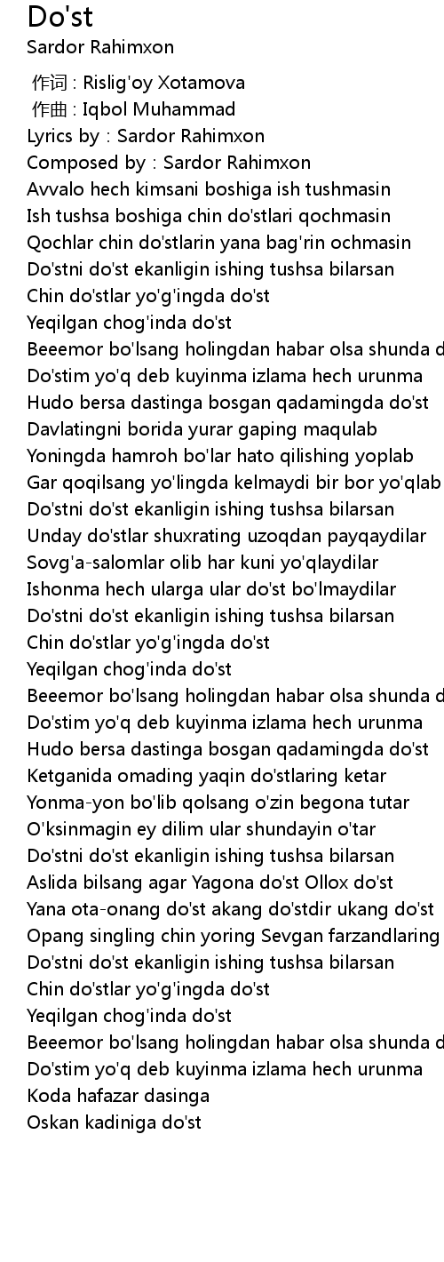 | [00:06.60] | Lyrics by: Sardor Rahimxon |