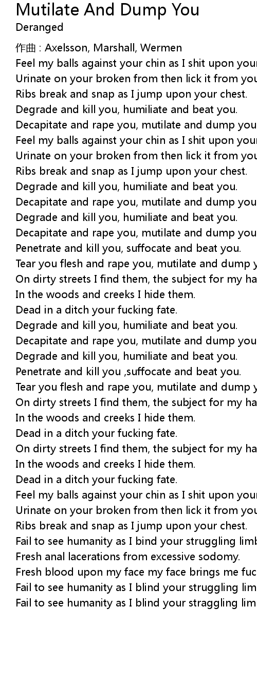 | Tear you flesh and rape you, mutilate and dump you. | |